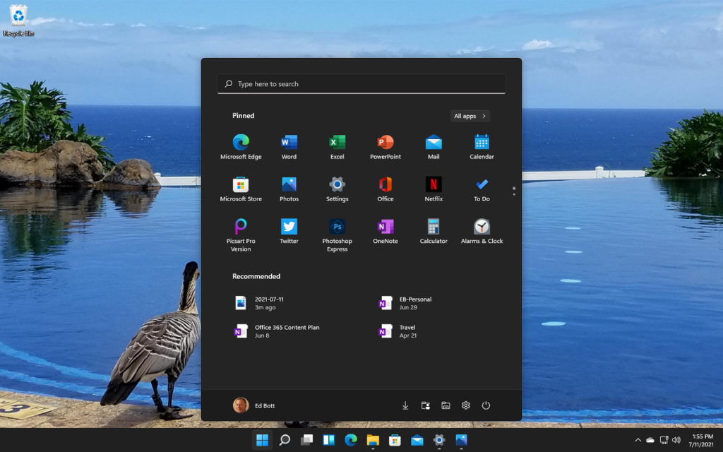 - Start menu and taskbar: The location of the Start menu and the taskbar will become central, with the possibility of moving them to the left or to the right. Live Tiles disappear from the menu and instead there will be a new widget feature on the taskbar, which contains information on news, weather, traffic updates and more.