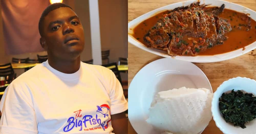 After graduating from university in 2016 with a Biochemistry Degree, and failing to secure a job, the Big fish owner picked up what was then a small fish vending business on the side of the street from his sister and convinced her to open a small Kibanda to sell cooked fish.
