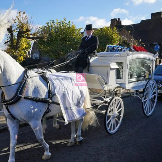 Payne’s coffin, adorned with floral tributes spelling “son” and “daddy,” arrived at St. Mary’s Church on a white horse-drawn hearse. Following the service, four pallbearers carried the coffin, accompanied by Payne’s parents and Cheryl.